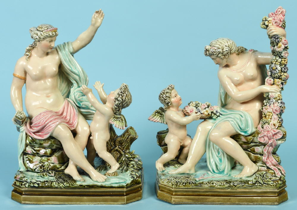 1331 Figurengruppen, 2 Stück - Nymphen mit Amoretten