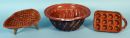 Keramik, braune Glasur, verschiedene Formen und Dekors, L= 22-32 cm, wohl 19. Jh., 1 mit Sprung;