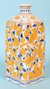 Terrakotta, helle Glasur, handbemalt mit gelben Vögeln und Blumen, gewellter Quaderkorpus, H= 27 cm, wohl Italien, 20. Jh.;