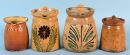 Keramik, beige Glasur, 2 handbemalt mit stilisierten Motiven, konischer Korpus, 3 mit Deckel, H= 14-22 cm, 19. Jh., teils leicht bestoßen;