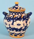 Keramik, Glasuren in verschiedenen Farben, stilisierte, florale Verzierungen, konischer Korpus, H= 13/25 cm, 19./20. Jh., je am Stand leicht bestoßen, Topf mit Sprung;