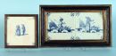 Fayence, beige Glasur, handbemalt mit Personenmotiven, je ca. 13 x 13 cm, wohl Delft, 17./18. Jh., in 2 Holzrahmen;