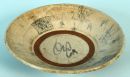 Keramik, graue Glasur mit bemaltem Ornamentdekor, H= 6 cm, D= 29 cm, Asien;