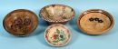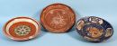 Keramik, farbig glasiert und handbemalt, verschiedene Motive, D= 34-39 cm, 18./19. Jh., je mit Gebrauchsspuren und Glasurschäden;