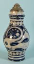 teils blau glasiert, geritztes, florales Dekor, verzierter Zinndeckel mit Mädchenbüste, Balusterkorpus, H= 50 cm, rücks. minimaler Chip;