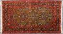 alt, Wolle, feine Knüpfung, rotgrundig, durchgemustert mit floralen Motiven, mehrere Bordüren, Fransen beschnitten, Gebrauchsspuren;