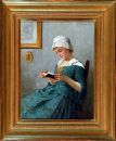 Öl/Holz, 35 x 26,5 cm, "Junge Frau bei der Lektüre", o.r. sign., dat. (19)01, Lit.: Thieme-Becker, Bötticher, Benezit, Müller-Singer, Busse, Saur;