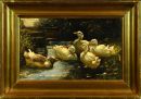 Öl/Platte, 30 x 49 cm, "Enten in Ufernähe", u.l. sign.;