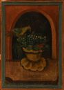 Öl/Holz, 46 x 29 cm, "Blumentopf mit Vogel";