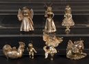 800/925 Silber, ca. 163 g, H= 3,5-7 cm, 4 Engel, je 1 Mädchen, Hahn, Jesuskind, teils als Anhänger;