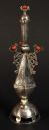 Silber, gesamt ca. 135 g, gravierte, florale Verzierungen, Halbkugelfuß auf durchbrochenem Stand, sechsseitiger, konischer Korpus, 3 stilisierte Vogelfiguren mit Korallekügelchen, H= 18,5 cm, 19. Jh., Fuß geklebt, Versand nur innerhalb der EU;