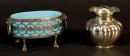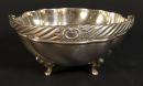 Silber, ca. 85 g, Schälchen auf 4 Tatzenfüßen, durchbrochene Wandung mit Ornamentdekor und 2 Löwenköpfen, ovaler, blauer Glaseinsatz, L= 9,5 cm, Meisterpunze "Georg C.F. Tem(m)ler", Augsburg, um 1800, Balusterväschen 925 Silber, godronierte Wandung, H= 6 cm;