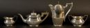 Metall versilbert, innen vergoldet, gerillte Wandung, Teekanne mit Holzgriff, H= 7,5-19 cm;