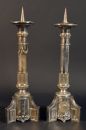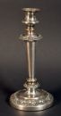 Messing versilbert, runder Sockel mit 3 kantigen Volutenausläufern, teils kannelierter Säulenschaft mit Verzierungen, H= 35 cm, um 1800, unvollständig;